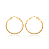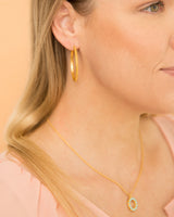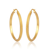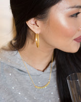 Subtle whimsical details make the Studded Hoop Earring a playful style. These gold hoop earrings feature small ball studs down the center of the earring that add texture and a dressy touch to even the most everyday settings. Designed in brass and plated in 18K gold, these hoop earrings are the perfect blend of timeless and boho style. A catch closure at the back secures these free-spirited gold hoops. Our Cable Bangles are the perfect complement to these gold hoop earrings.