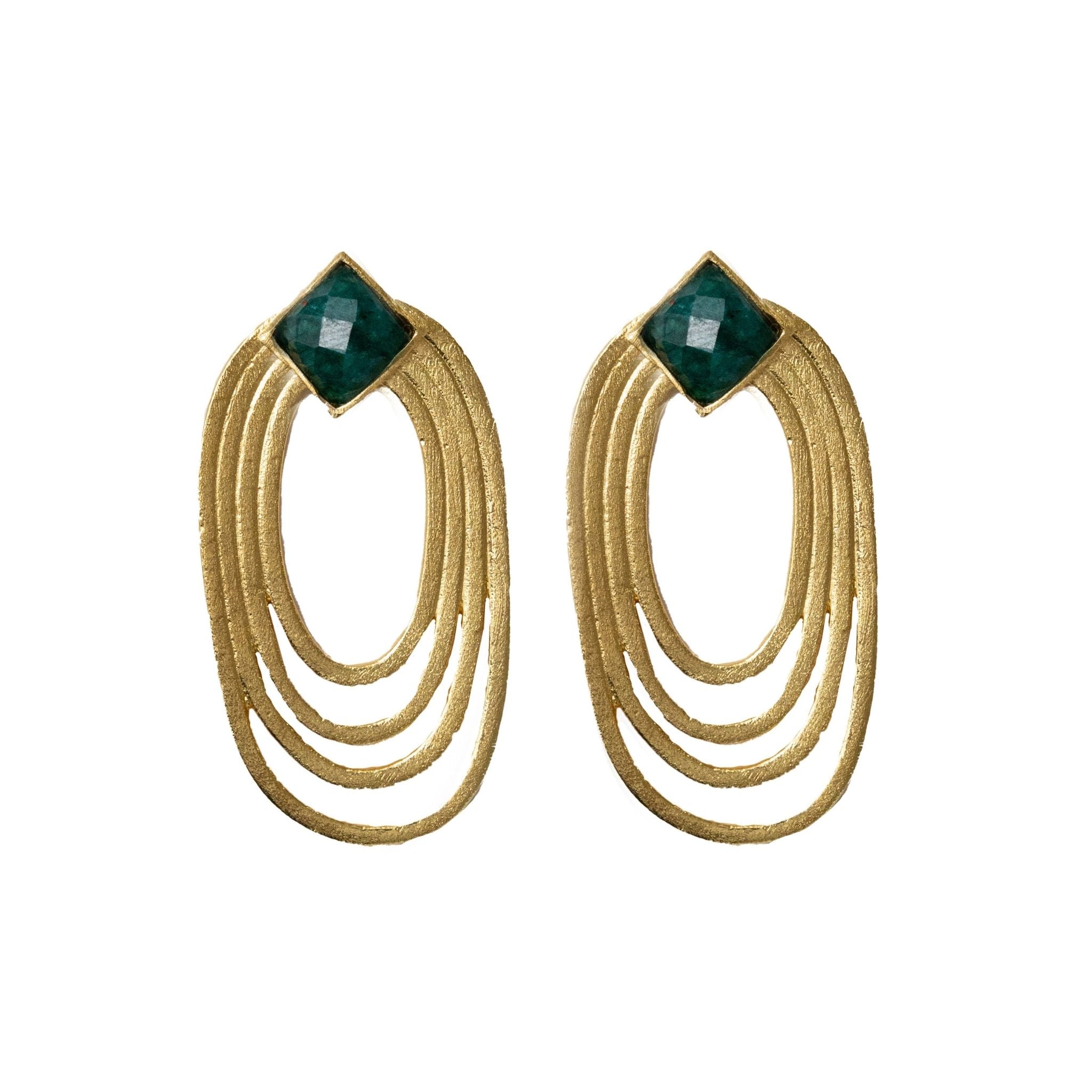 A festive twist on your everyday studs. The Winter Garland Stud Earrings feature a square emerald agate stone set at the apex of intertwined gold coils, reminiscent of a holiday garland sparkling in the winter light. Crafted in 22K gold-plated brass, these limited-edition stud earrings are perfect for adding a subtle yet striking touch of seasonal charm to any outfit.
