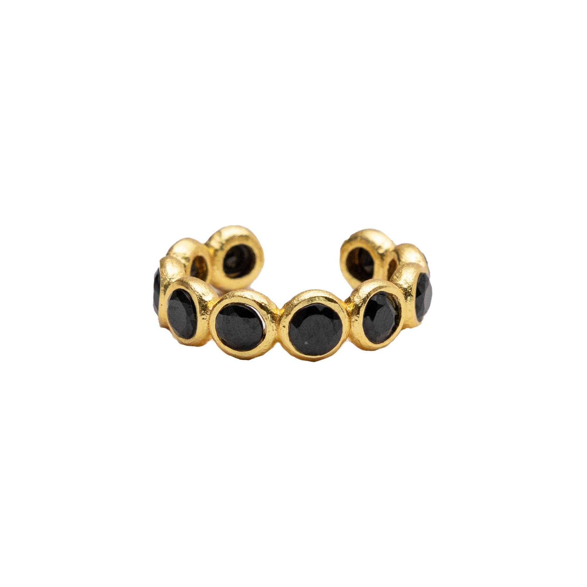 Add a little magic to your hand. The Winter Magic Ring in Black Onyx is a limited-edition statement piece from the Holiday Magic Collection, crafted with faceted circular black onyx stones set into matching 22K gold-plated circular settings. This adjustable open-back ring is as comfortable as it is show-stopping.