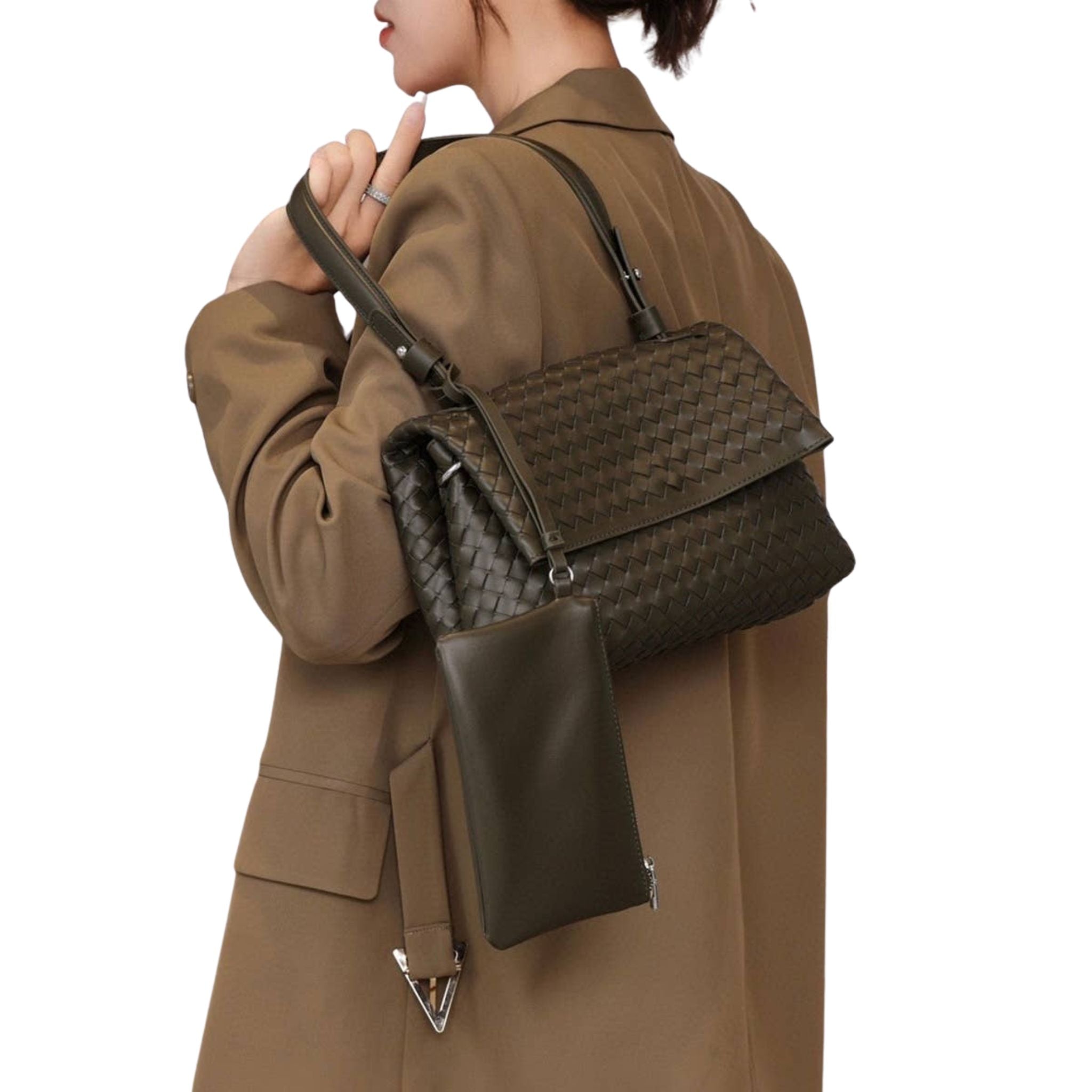 Genuine Leather Woven Envelope Shoulder Crossbody Bag