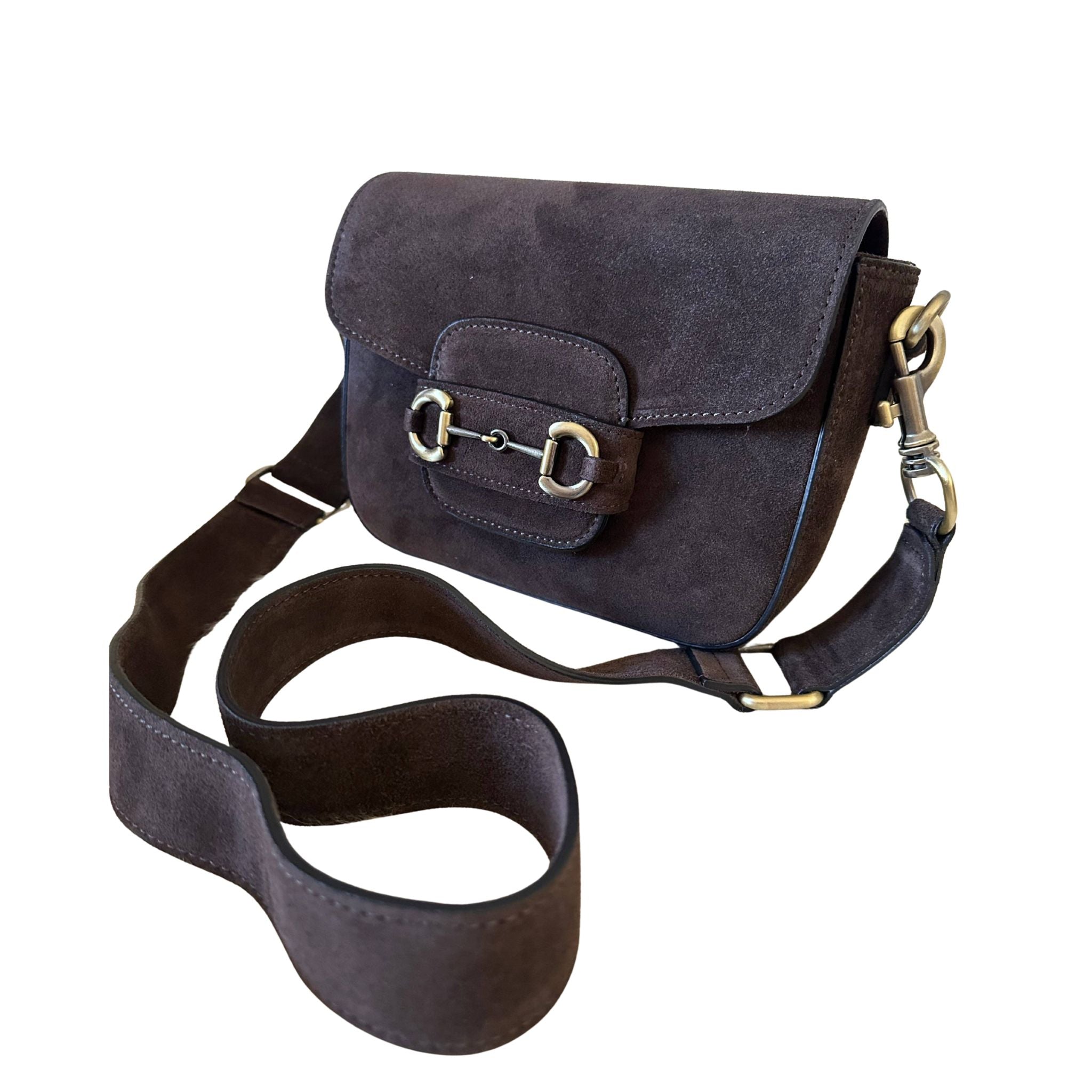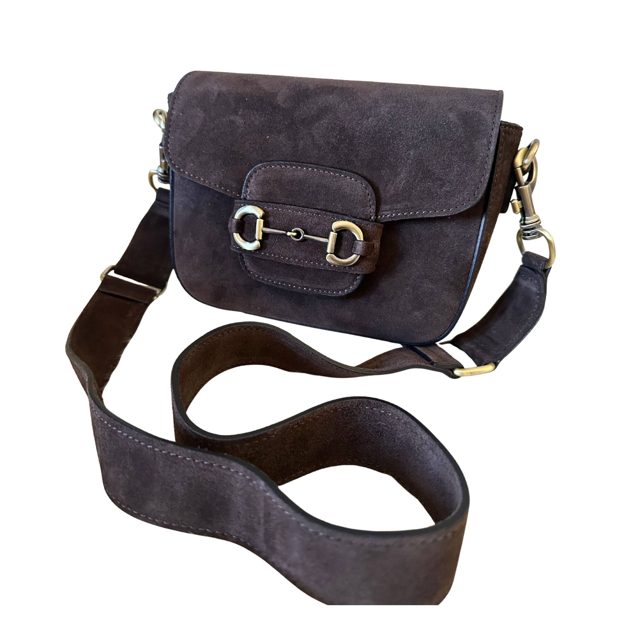 Emily Suede Crossbody Bag - Dark Brown