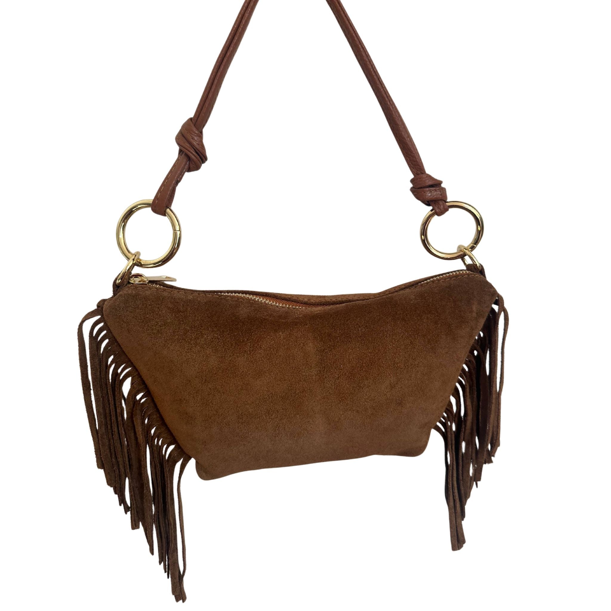 Musa Suede Fringe Bag - Cognac