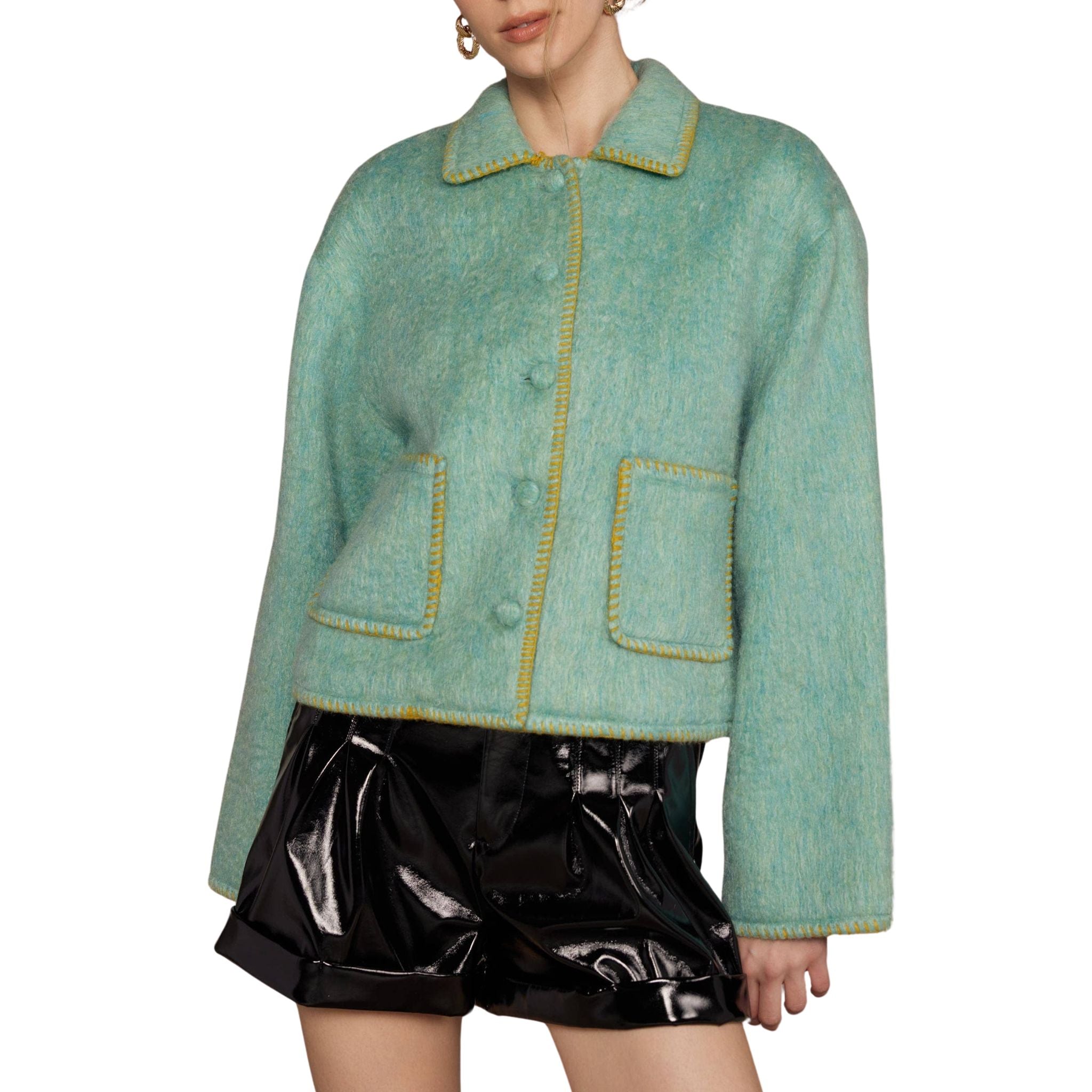 Diagonal Ruffled Long Sleeves Denim Jacket