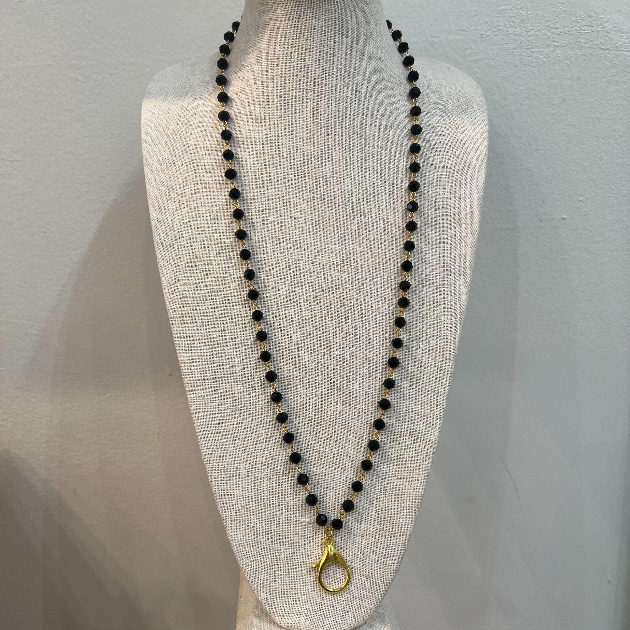 Sweet Stone Beaded Knotted Necklace - Black Agate