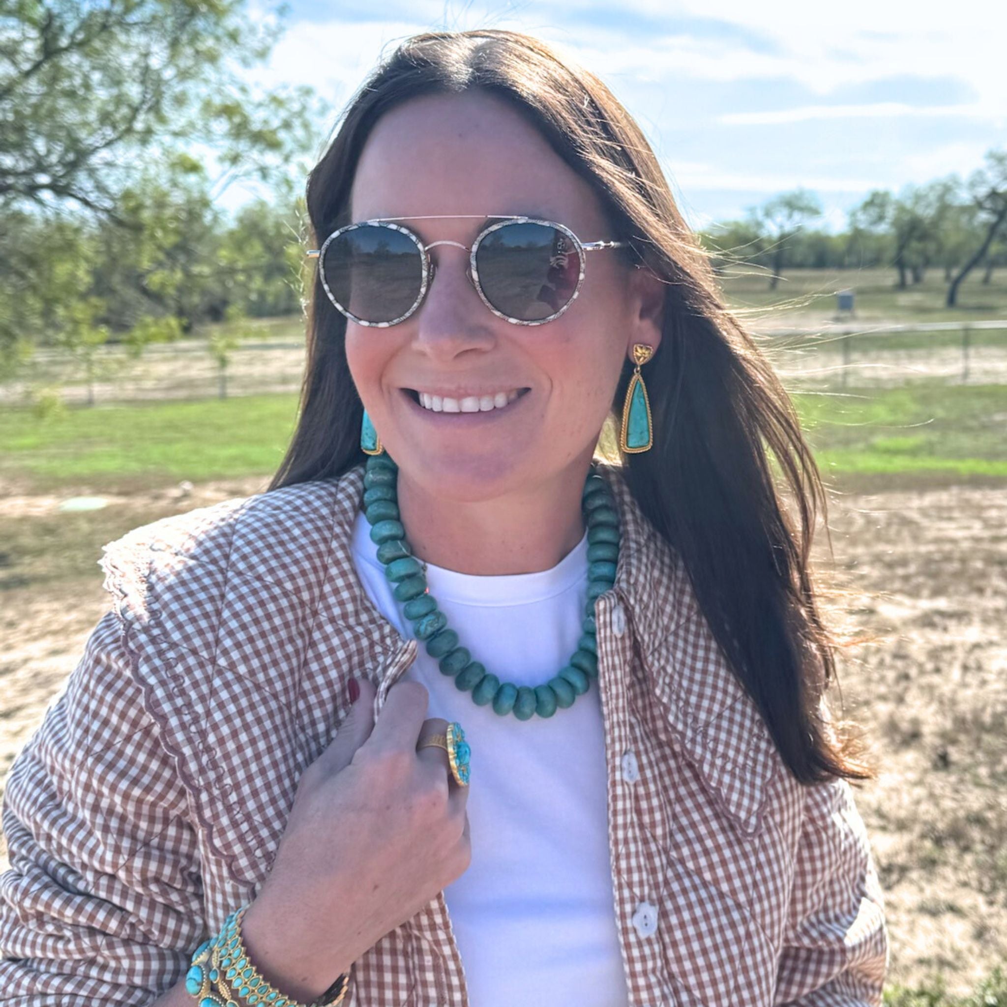 Christina Greene transformed her passion for jewelry-making into a brand that helps women make a statement with modern-meets-classic designs featuring natural stones. After studying design in Texas and NYC, she launched her Houston-based business. Her 18K gold-plated, hypoallergenic pieces, known for their signature turquoise, have gained national recognition.