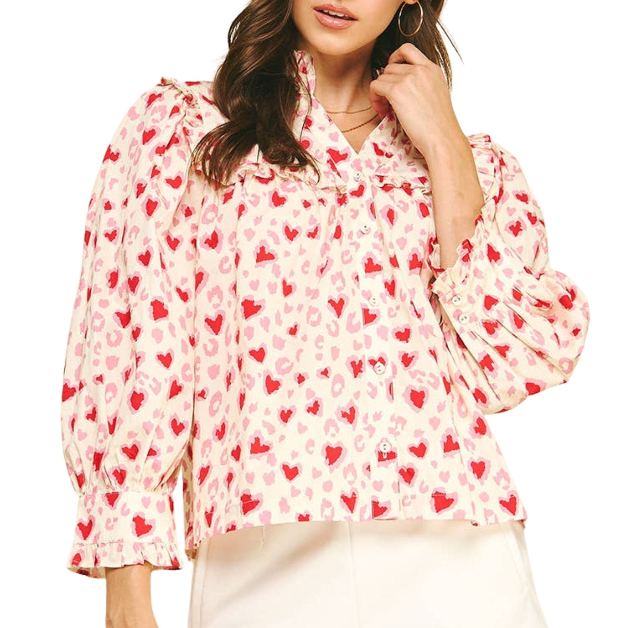 Hearts Pattern Blouse Top