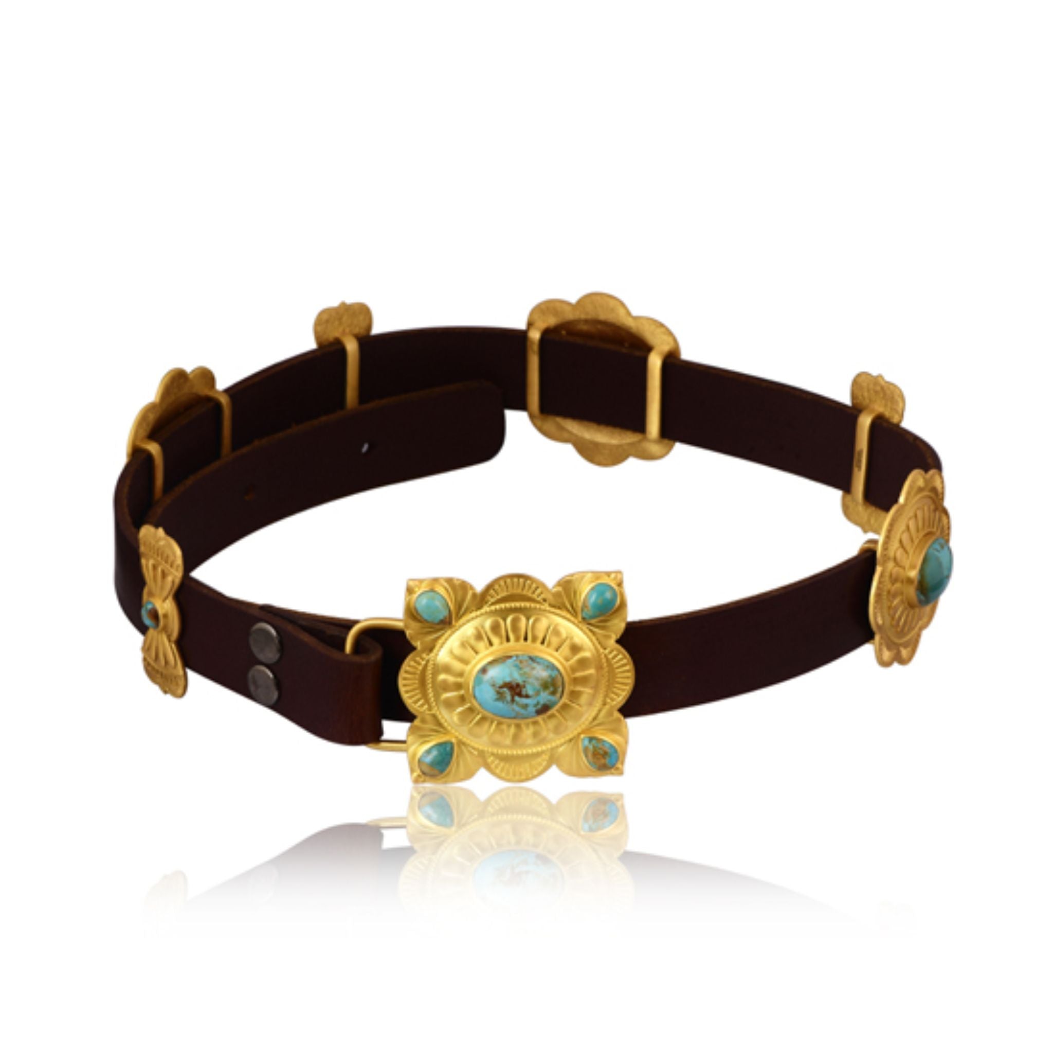 Turquoise and Brass Concho Belt Accent