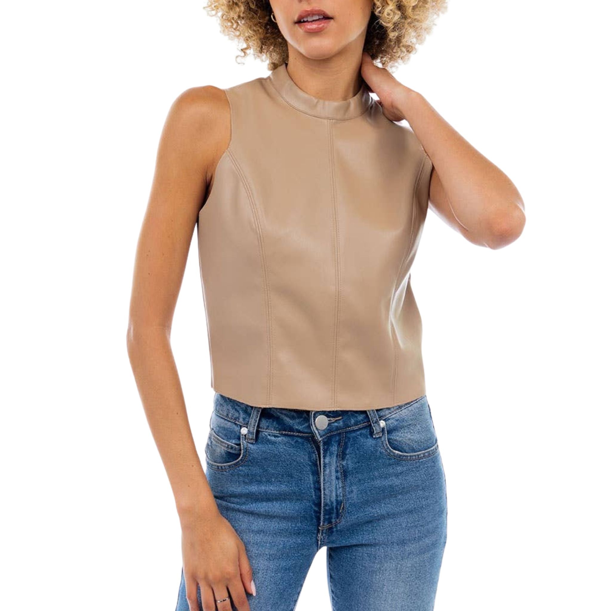 Faux Leather Fringe Braided Yoke Crop Waist Vest