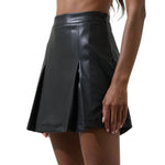 This striking mini skirt marries sophisticated tailoring with contemporary edge. Crafted in supple leather, it features a refined high-waisted silhouette and a graceful pleated front panel that adds movement and dimension. The tweed plaid detailing creates visual interest while maintaining an understated luxury feel. Perfect for transitioning from day to evening, it pairs effortlessly with pointed-toe heels and structured accessories for an elevated, fashion-forward ensemble.