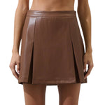 This striking mini skirt marries sophisticated tailoring with contemporary edge. Crafted in supple leather, it features a refined high-waisted silhouette and a graceful pleated front panel that adds movement and dimension. The tweed plaid detailing creates visual interest while maintaining an understated luxury feel. Perfect for transitioning from day to evening, it pairs effortlessly with pointed-toe heels and structured accessories for an elevated, fashion-forward ensemble.