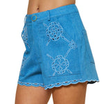 Embroidered Eyelet Scalloped Trim Denim Shorts