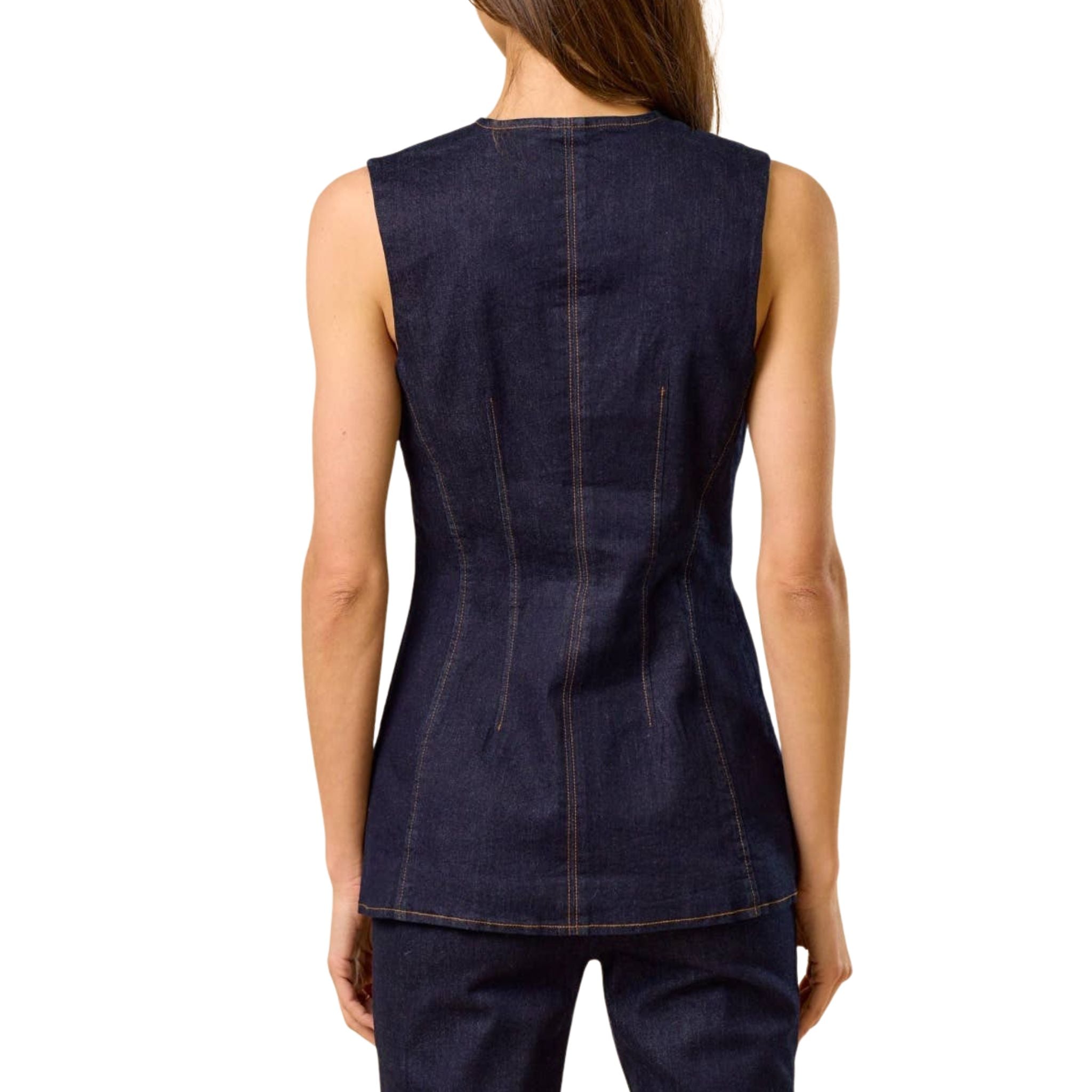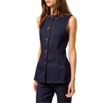 Keep it cool and classic with this Denim Sleeveless Button-Down Top. Featuring a structured silhouette, front button closure, and timeless denim fabric, this top is perfect for casual days or layered looks. Its sleeveless design offers a relaxed, breathable fit-ideal for spring and summer styling with a modern twist. Pair with high-waisted jeans, skirts, or shorts for an effortless denim-on-denim outfit.