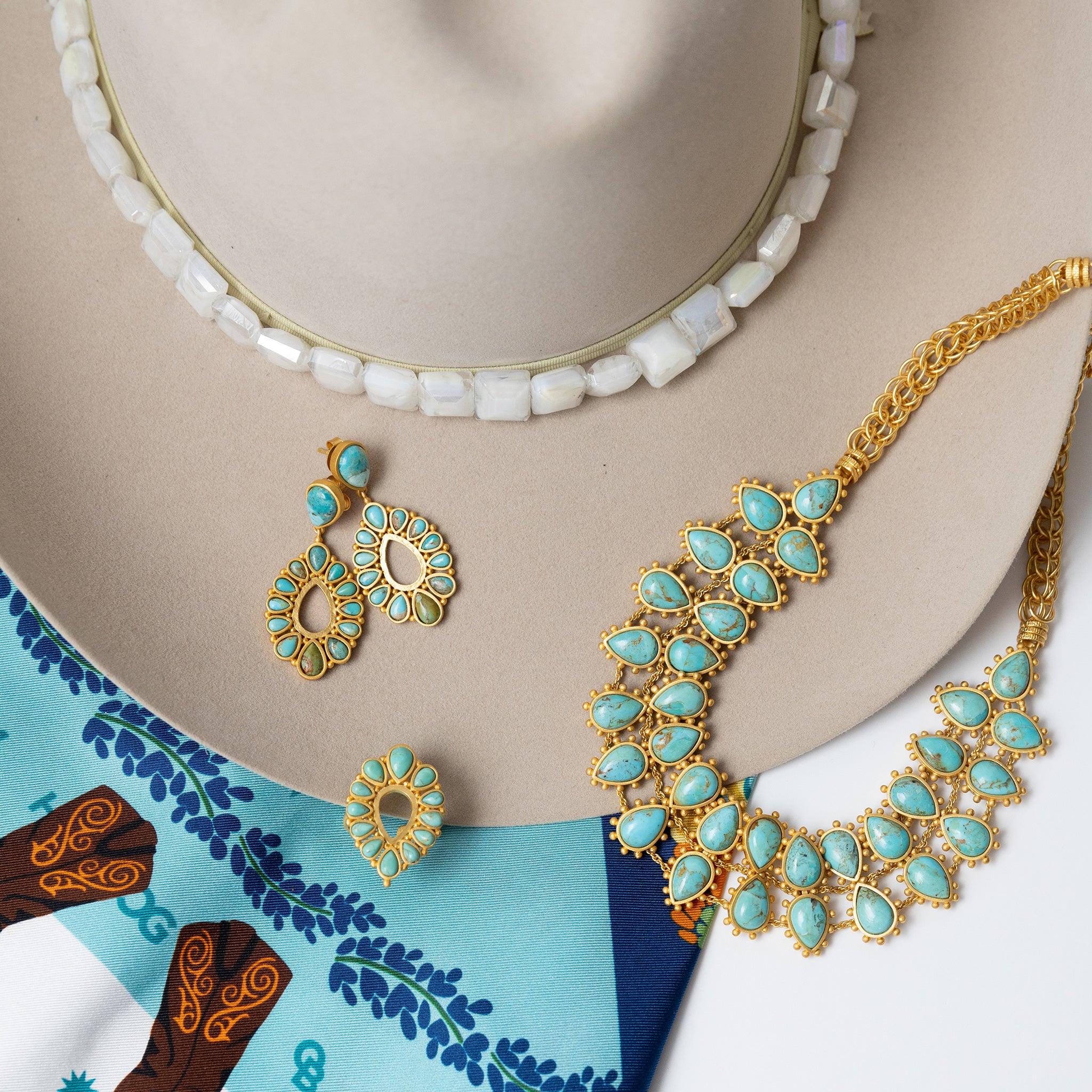 Add a little personality to your favorite cowboy hats with a unique hat band from Christina Greene. From beaded hat bands to hat bands adorned with semiprecious stones like turquoise, step up your hat game whether topping off your rodeo outfit or just rocking your cowgirl hat with your every day style.