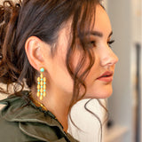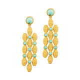 Elevating any look begins with a stunning earring, and the Air of Wonder Chandelier Earring is the perfect look. This chandelier earring is anchored by a round stud stone with post back and a cascade of beautifully textured 18K gold-plated brass. Small round turquoise stones throughout add a sweet pop of color. The perfect upgrade from your favorite stud earrings, this turquoise and gold drop earring so elegant. Complete the look by pairing it with our Air of Wonder Necklace or Float On Bangle.