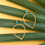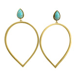 These polished gold earrings draw a fine line of style that’s hard to come across. Featuring teardrop labradorite, turquoise and pearl gem studs and anchored by a large hoops emulating the same pear shape, this mirrored silhouette is the perfect reflection of modern beauty – just like you.