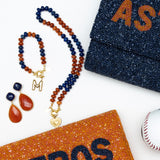 Bring the heat on game day. The Game Day Crystal Statement Earrings are designed to turn heads from first pitch to final out. Inspired by the bold, unmistakable colors of the Houston Astros, these striking earrings feature a rich lapis stud paired with a fiery carnelian drop, creating a color combo that’s as iconic as your team spirit.