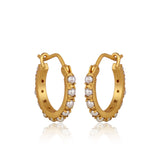 A little goes a long way with our Pearl Huggies. These huggies are designed in brass and brushed in 18K gold plating. Adorned with round pearl stones in dramatic prong settings, these small hoop earrings add a pop of color, without overtaking an outfit. Team these pearl earrings with our matching Dainty Pendant Necklace for the perfect everyday jewelry combination.
