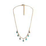 Just like a fresh ray of sunshine, this turquoise necklace warms up your look, thanks to polished gold sprinkled details. Bouncing off the light along a fine beaded chain, these teardrop gems set your charm in stone as they add a pop iridescent beauty to any and