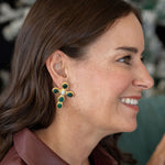 The textured gold settings enhance the depth and shine of the stones, making these emerald cross stud earrings a standout for holiday gifting, seasonal layering, or elevating everyday outfits. Each pair is limited edition, ensuring a collectible, one-of-a-kind addition to your jewelry collection.