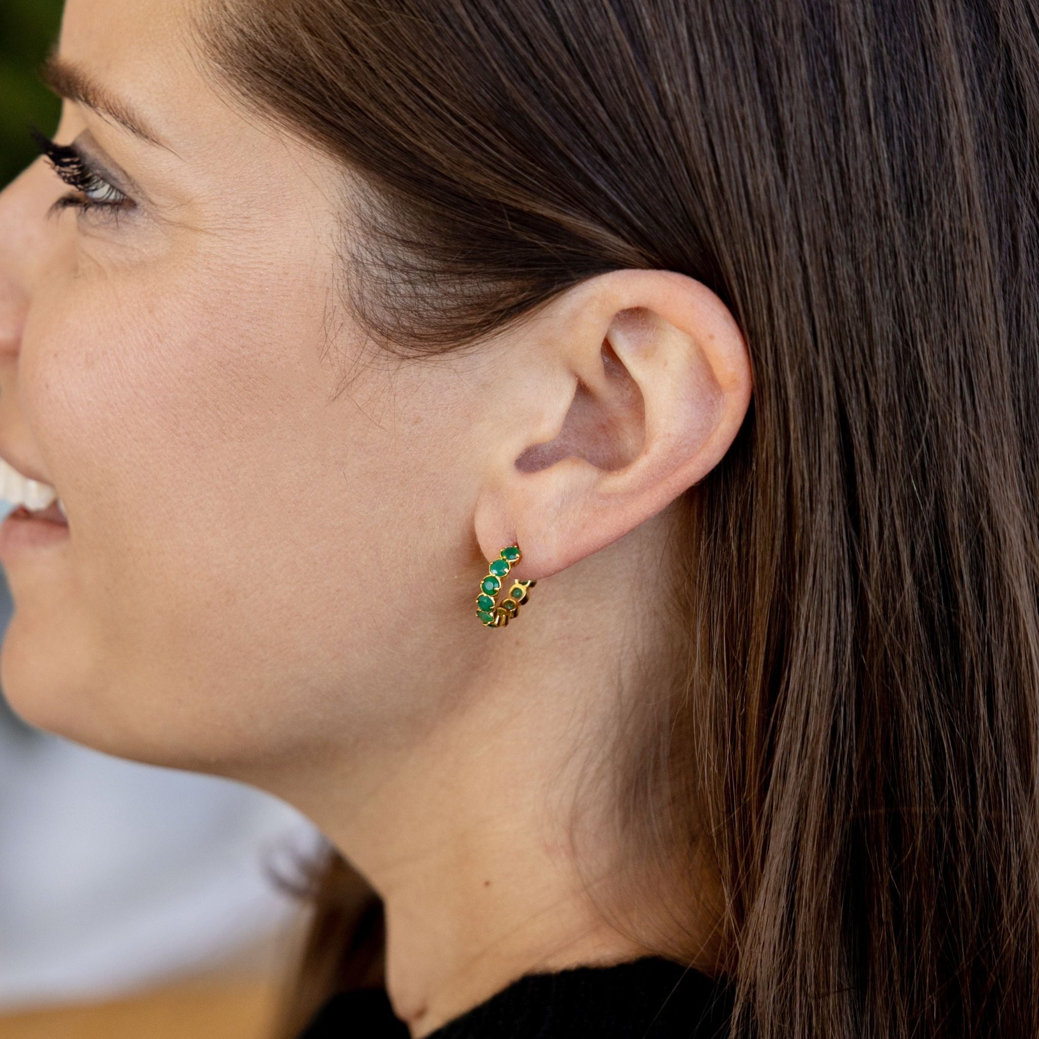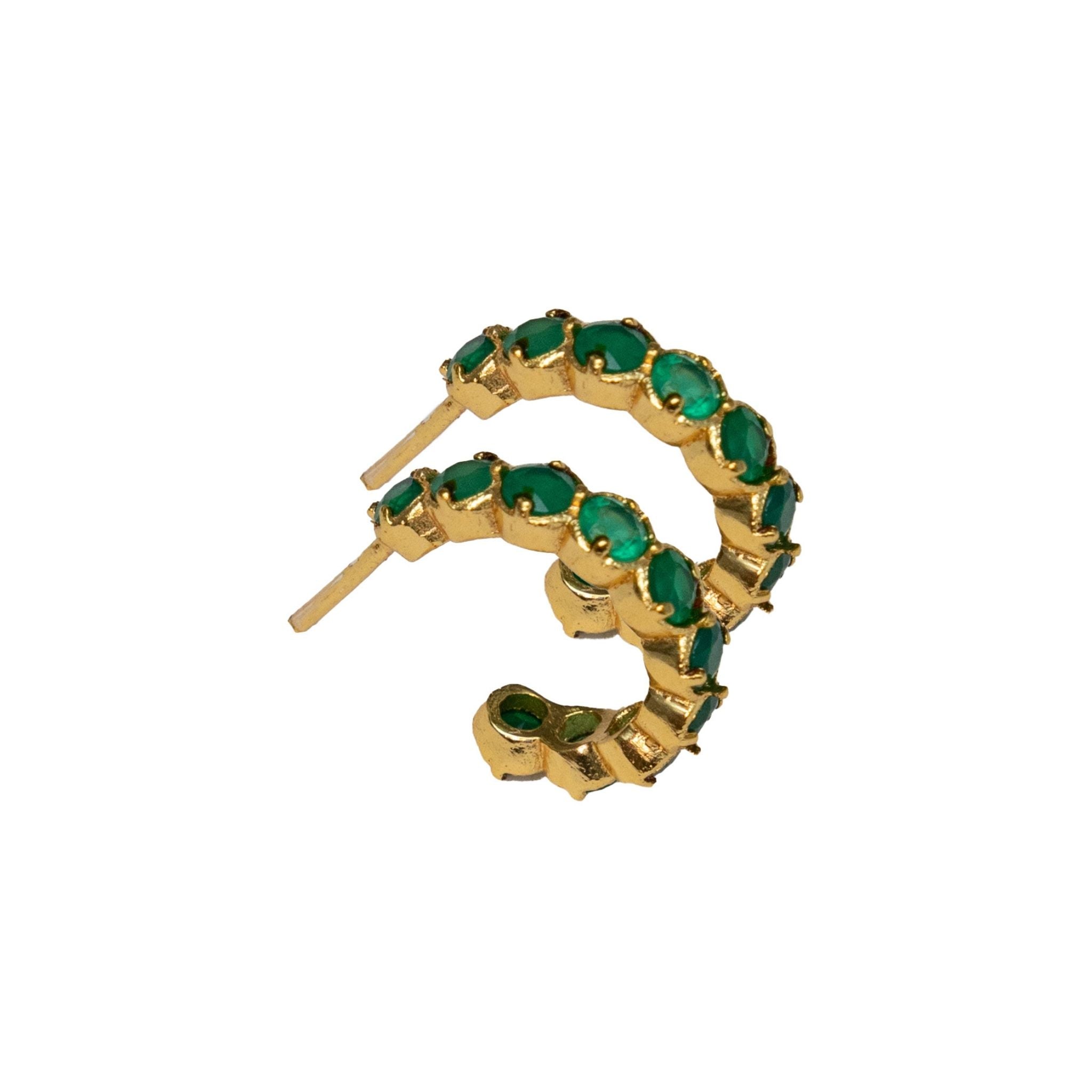 Step into a vibrant holiday season with gorgeous day-to-night hoops. The Gilded Forest Hoop Earrings feature vibrant green onyx stones set into 22K gold-plated brass, creating a luxurious and timeless look. Perfectly sized for everyday wear or holiday celebrations, these hoops add a pop of rich color and sophisticated sparkle to your jewelry collection.