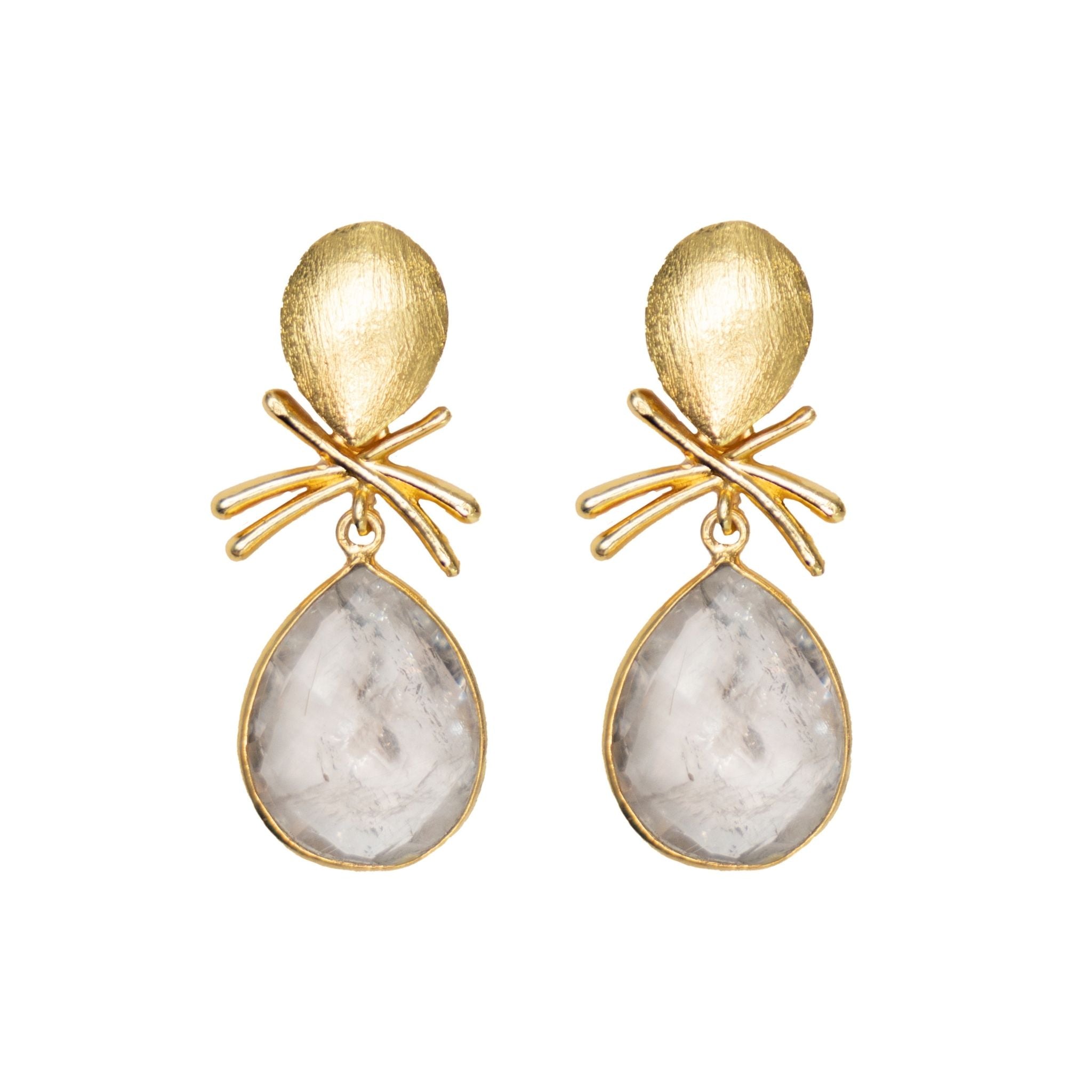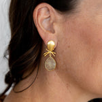 Shimmer like holiday lights. These statement earrings feature natural golden rutile stones set in 22K gold-plated brass, capturing the warm, luminous tones of festive celebrations. The faceted rutile gleams beautifully from every angle, creating a luxurious, eye-catching effect perfect for holiday parties, seasonal gatherings, or elevating eveningwear.