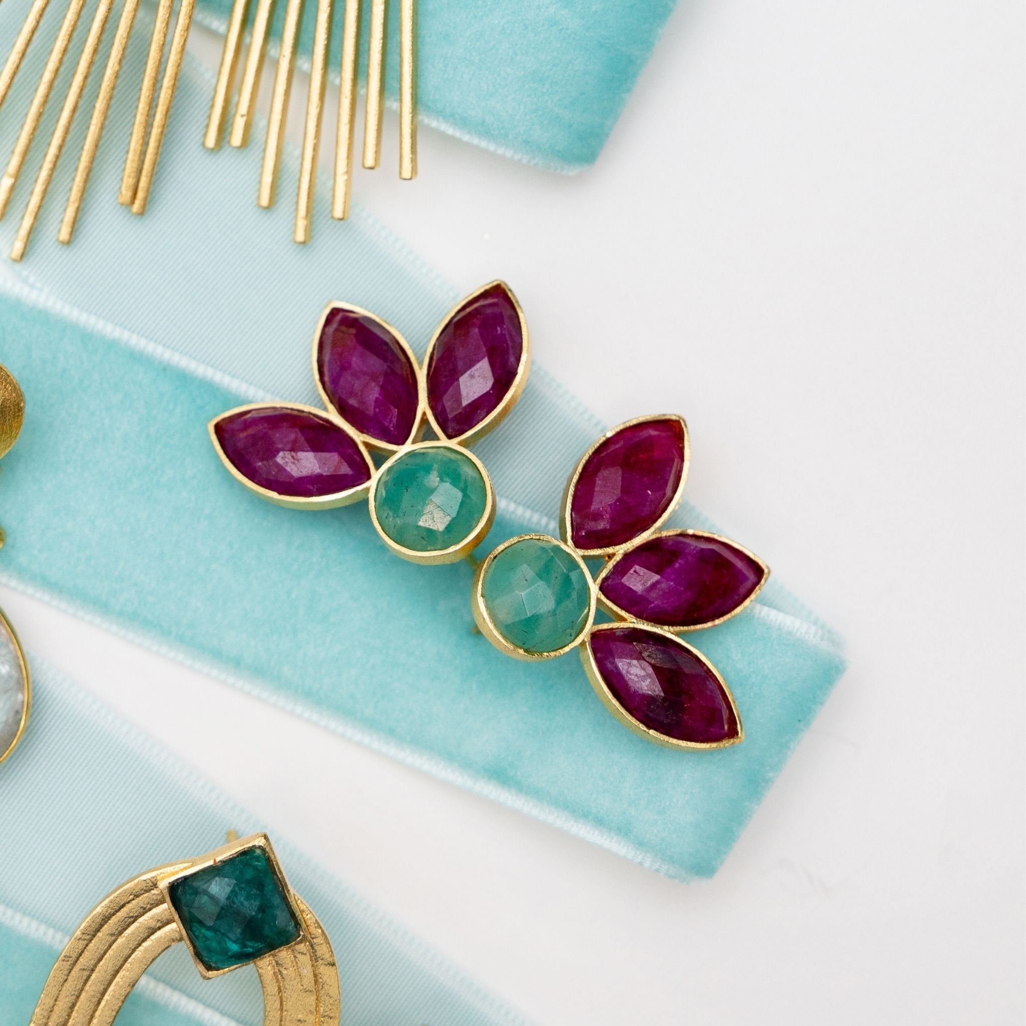 The combination of cool amazonite and rich ruby agate evokes a classic winter palette, making these studs ideal for holiday gifting, festive celebrations, or layering with other pieces from the Holiday Magic Collection.